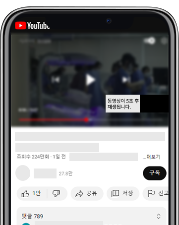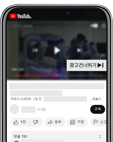 사용자가 시청하는 유튜브 영상은 시작 또는 영상 중간에 광고를 노출할 수 있습니다.
